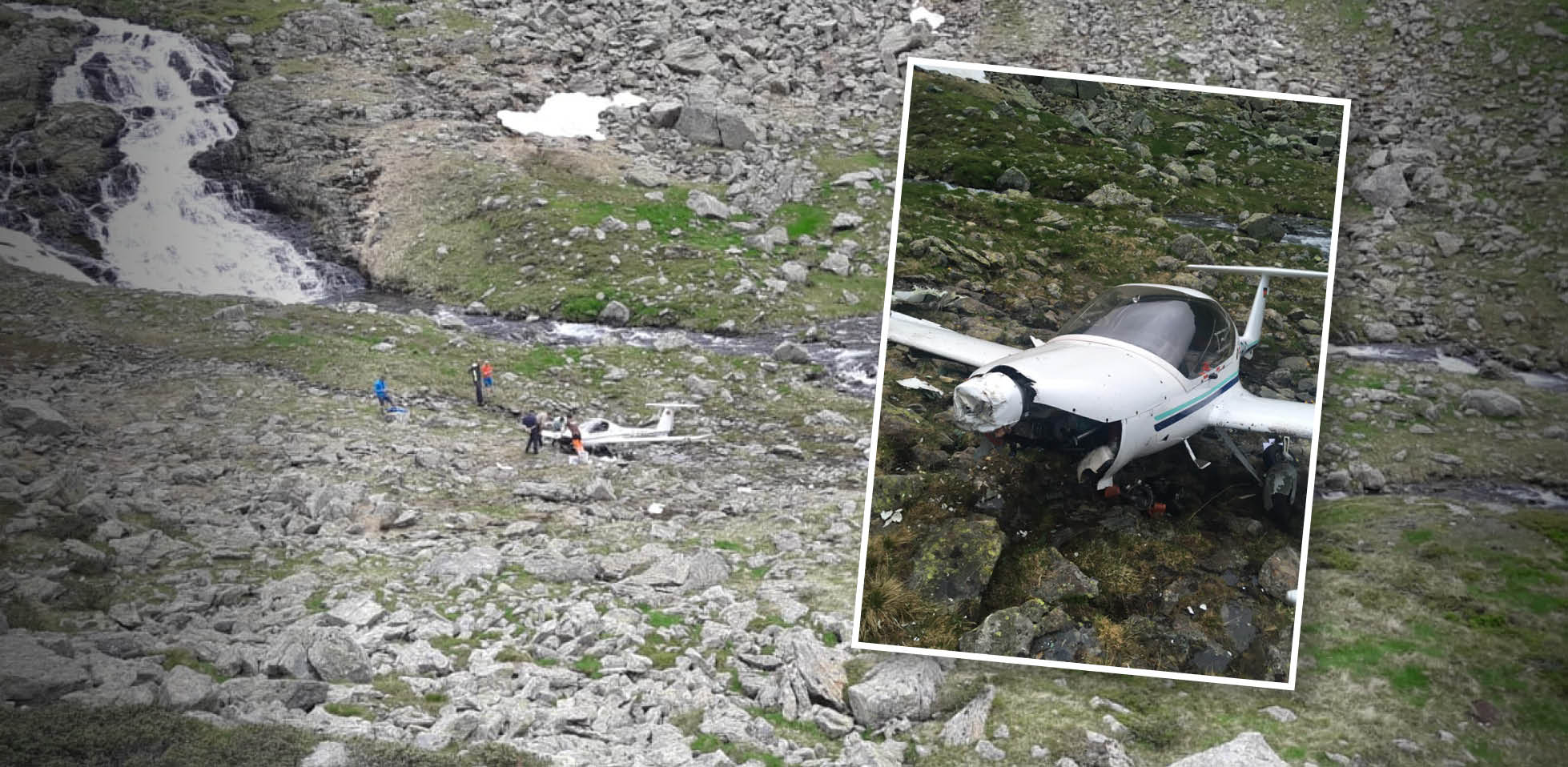 Die Maschine wurde schwer beschädigt, die Insassen überlebten nahezu unverletzt.