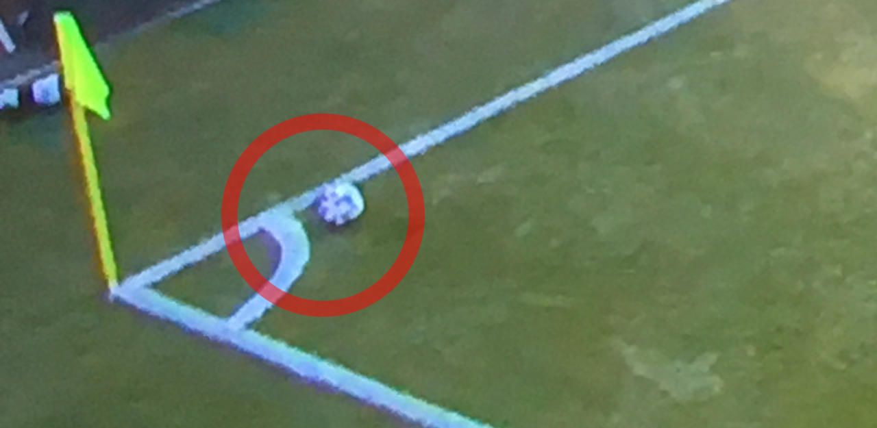 Der Fotobeweis: Eckball-Schütze Rep legte sich den Ball zu weit vor, das Tor zum zwischenzeitlichen 2:1 für Hartberg hätte nicht zählen dürfen.