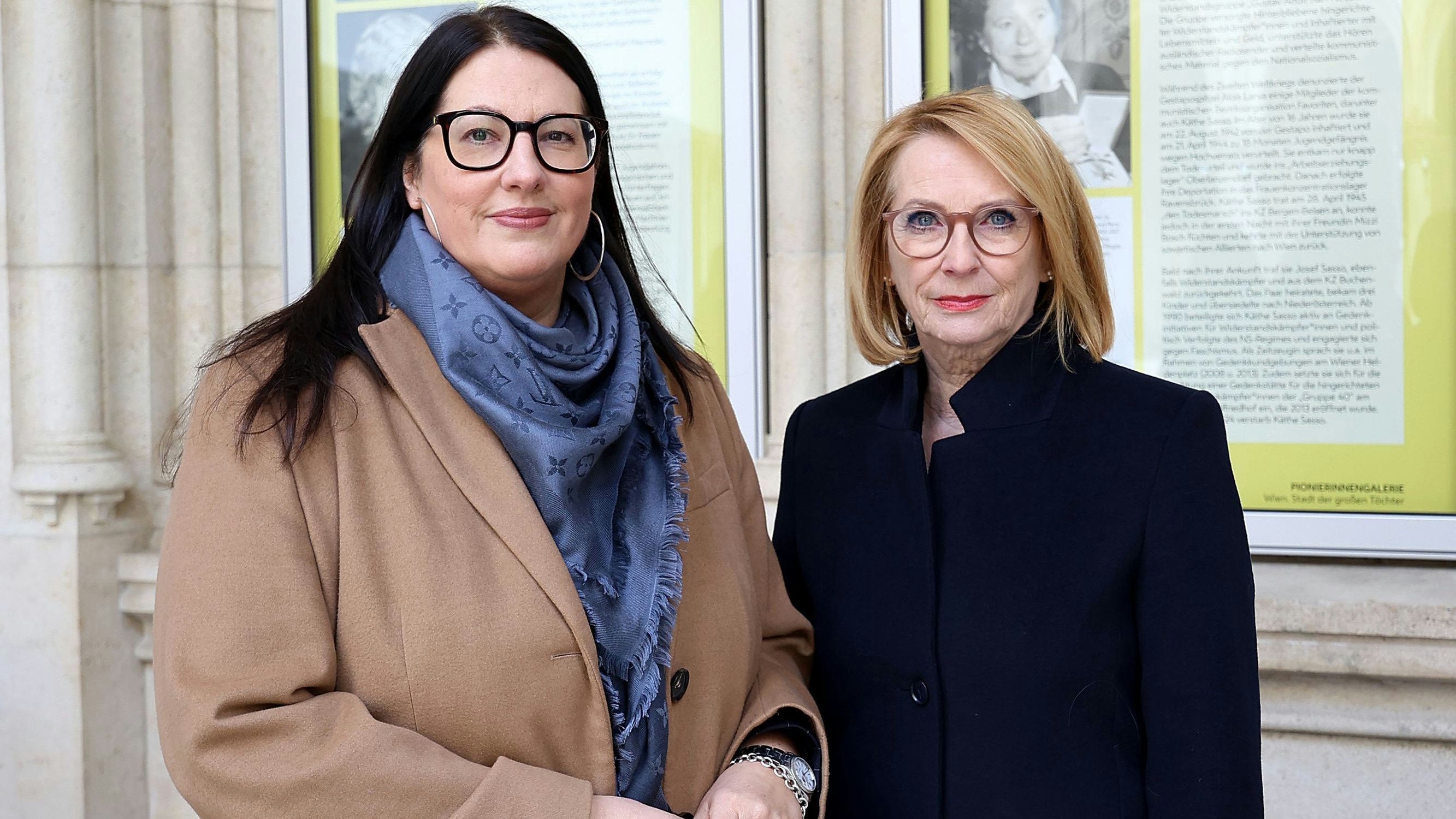 Frauenstadträtin Kathrin Gaál (links) und die dritte Nationalratspräsidentin Doris Bures freuen sich über die Ehrungen.