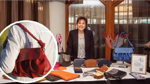 Erika Tonso zeigt ihre "Orangenleder-Tasche".