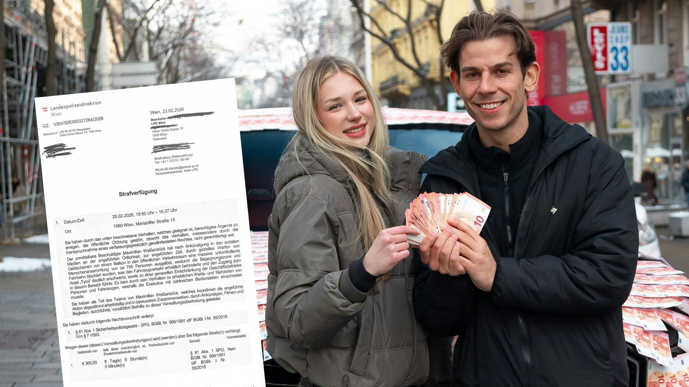 Max Weißenböck sorgt mit seinen Aktionen für Aufsehen. Jetzt muss er Strafe zahlen - weil er Geld aus dem Fenster warf.
