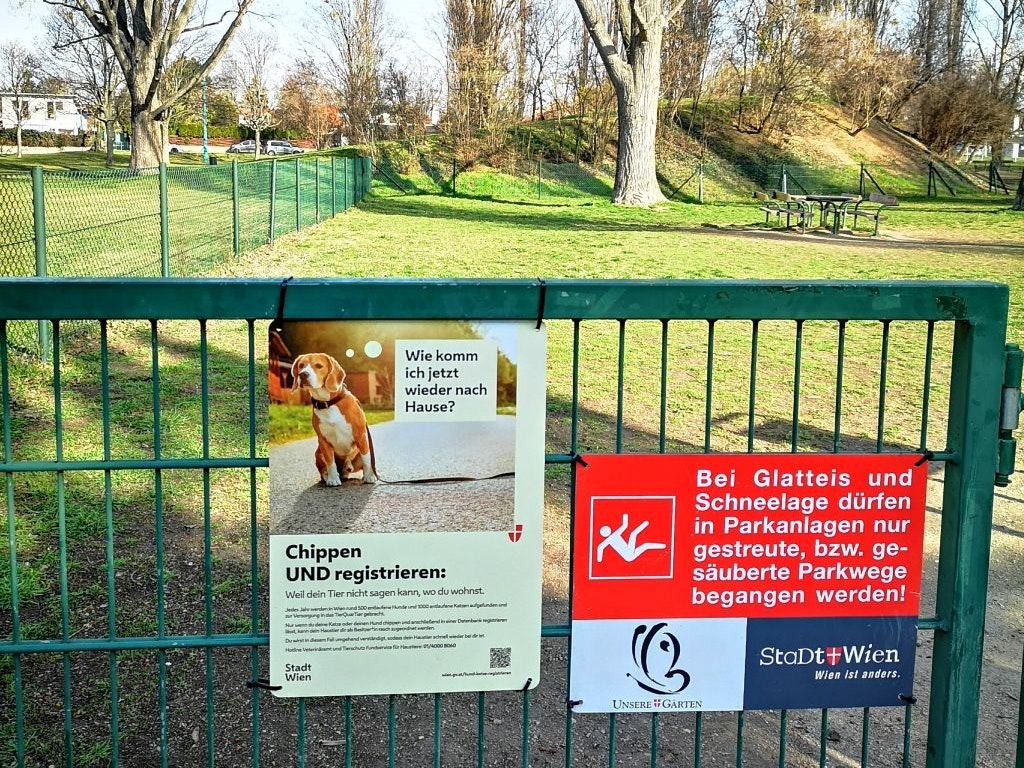 Mit Schildern vor Hundezonen will man nun darauf aufmerksam machen, wie wichtig es ist, sein Tier chippen und registrieren zu lassen.