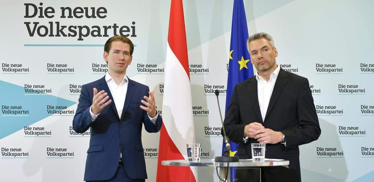 Sebastian Kurz und Generalsekretär Karl Nehammer bei der Pressekonferenz am 17. Juni