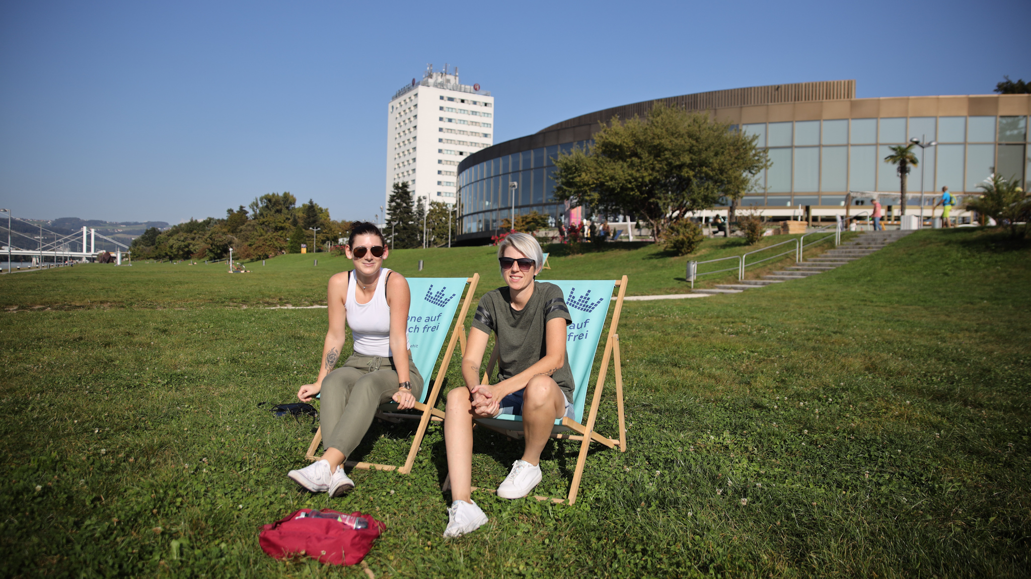 Sabine (24) und Kerstin (34) aus Linz, genossen die letzten Sonnenstrahlen noch im Liegestuhl auf der Donaulände.