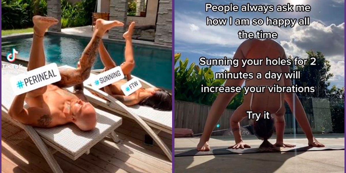 Auf dem Rücken liegend mit gespreizten Beinen oder in der Yogapose des herabschauenden Hundes: TikToker versprechen sich wohltuende Wirkung vom Genitalbräunen.