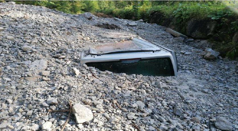 Eine Geröll-Lawine begrub den VW-Transporter unter sich.