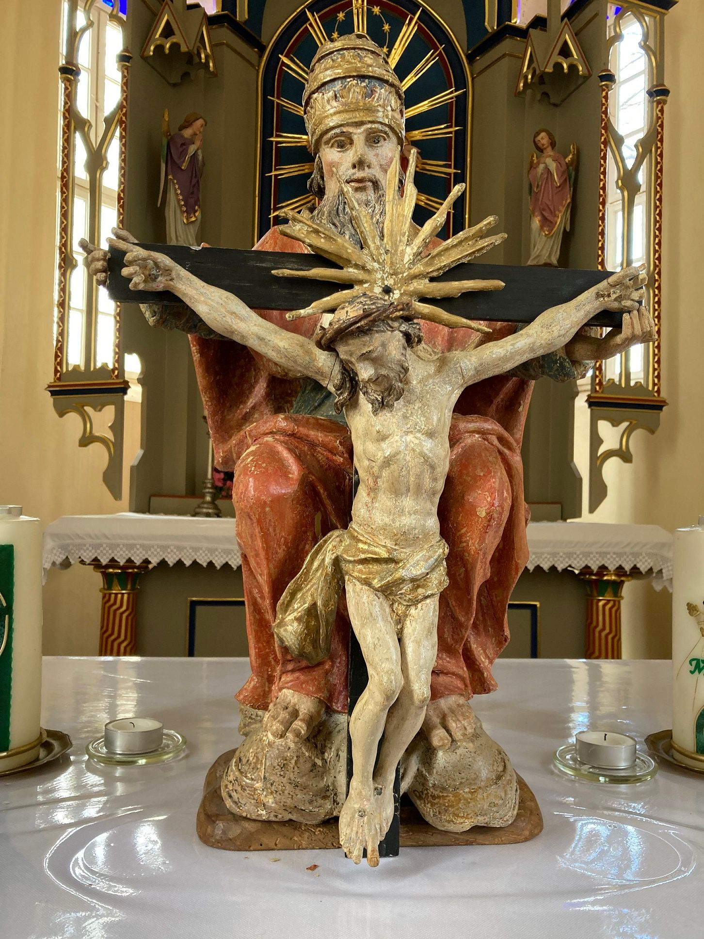 Die Gottvater-Statue steht wieder auf ihrem Platz in der Kapelle in Hürm.