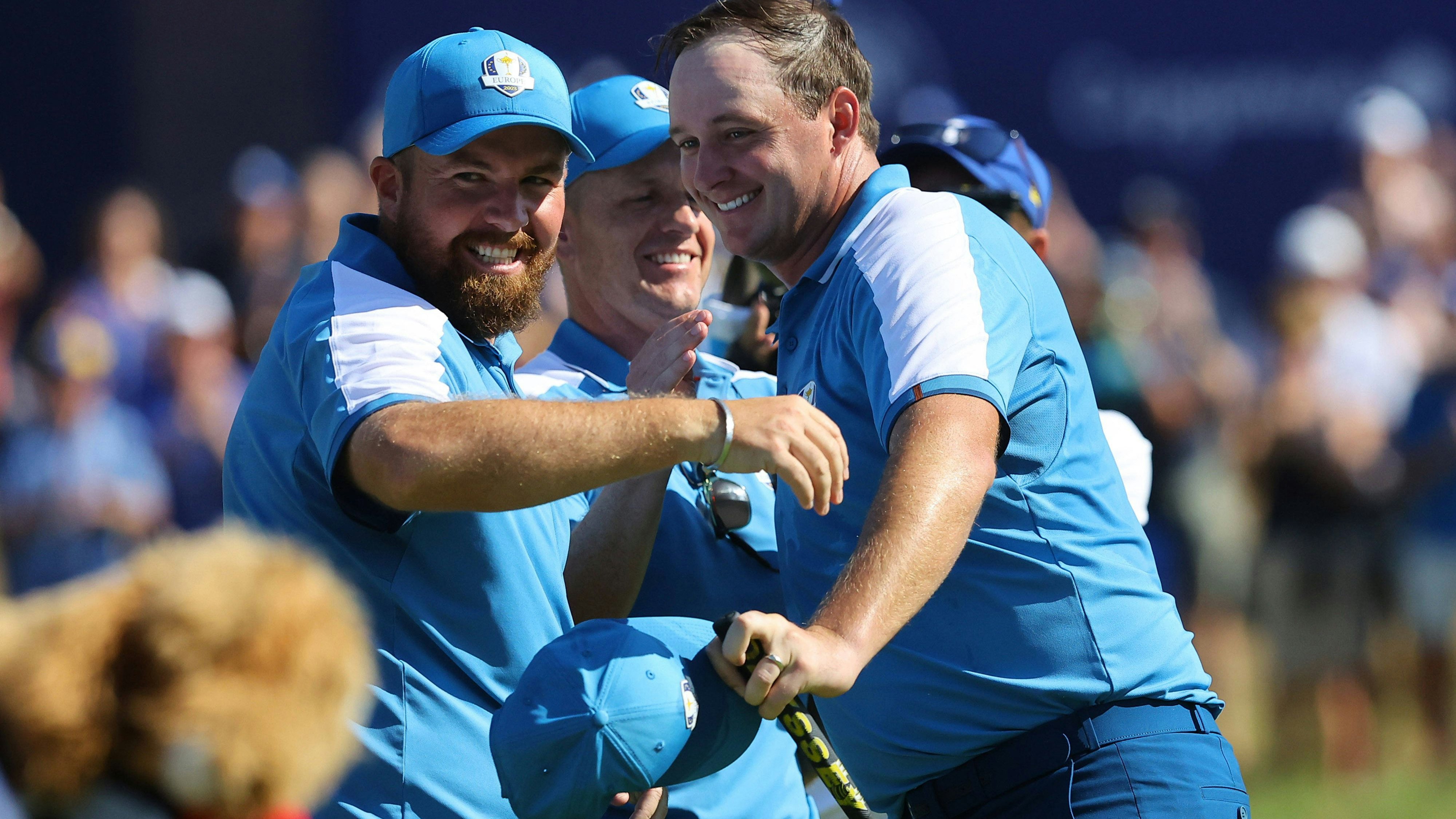Straka (r.) jubelt mit seinen Teamkollegen.