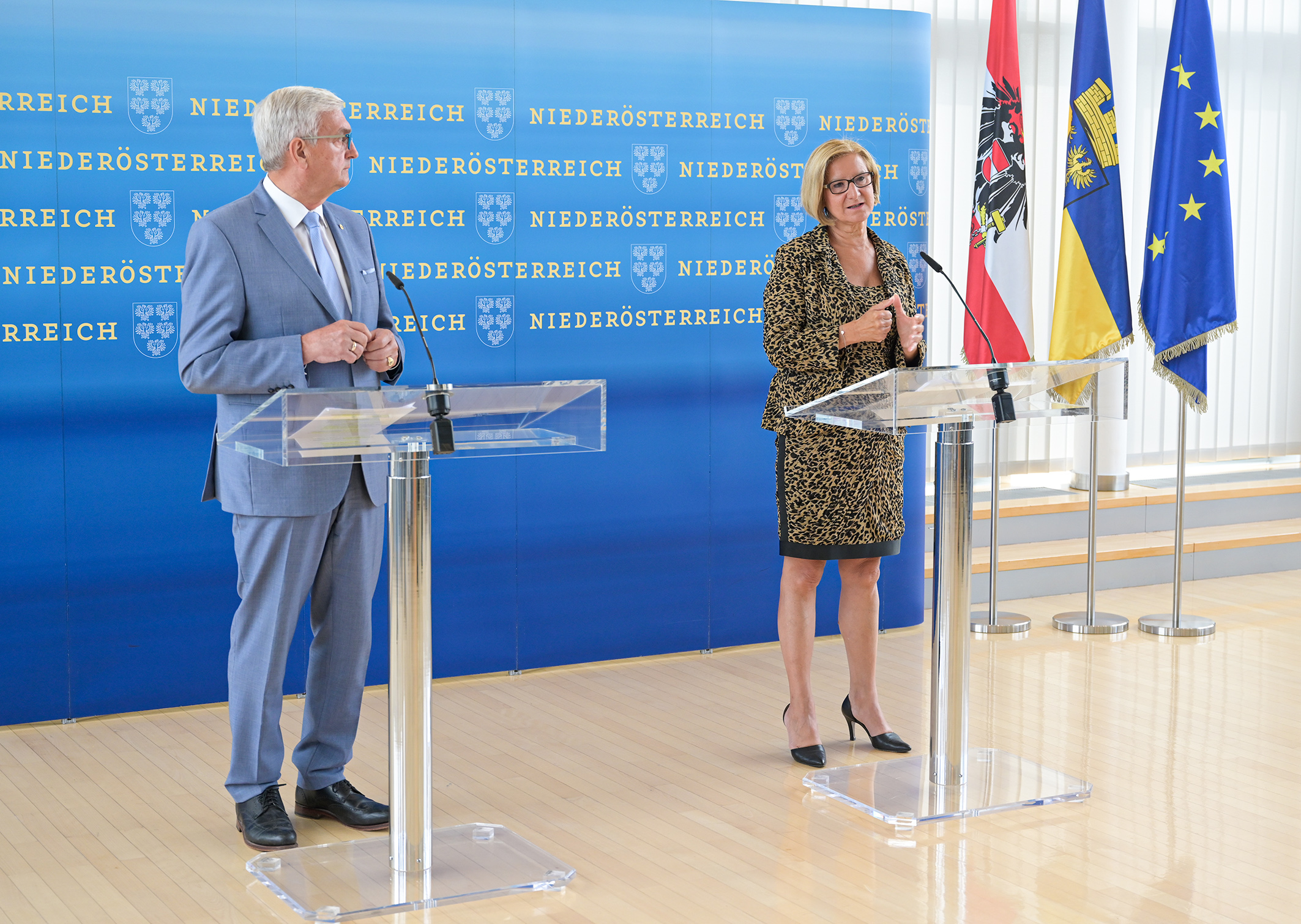 Landeshauptfrau Johanna Mikl-Leitner präsentierte gemeinsam mit Gemeindebund-Präsident Alfred Riedl die landesweite PCR-Test-Aktion für Pädagogen und Gemeindebedienstete.