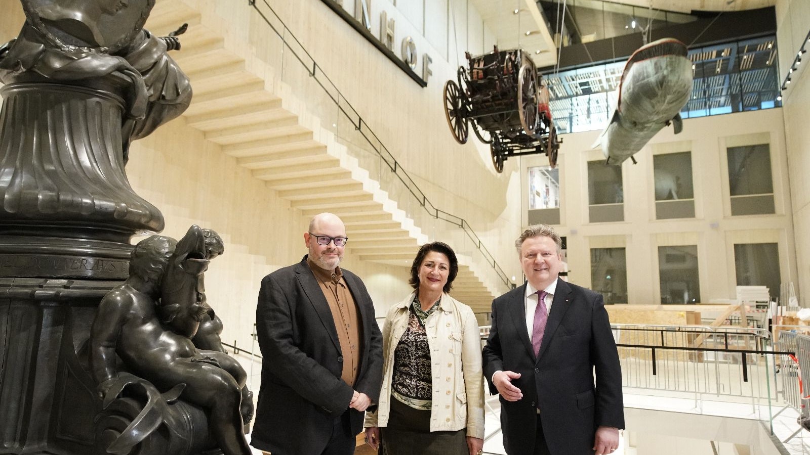 Der Countdown zur Eröffnung am 6. Dezember läuft – Wien-Museum-Direktor Matti Bunzl, Kulturstadträtin Veronica Kaup-Hasler und Bürgermeister Michael Ludwig (v.l.) freuen sich.