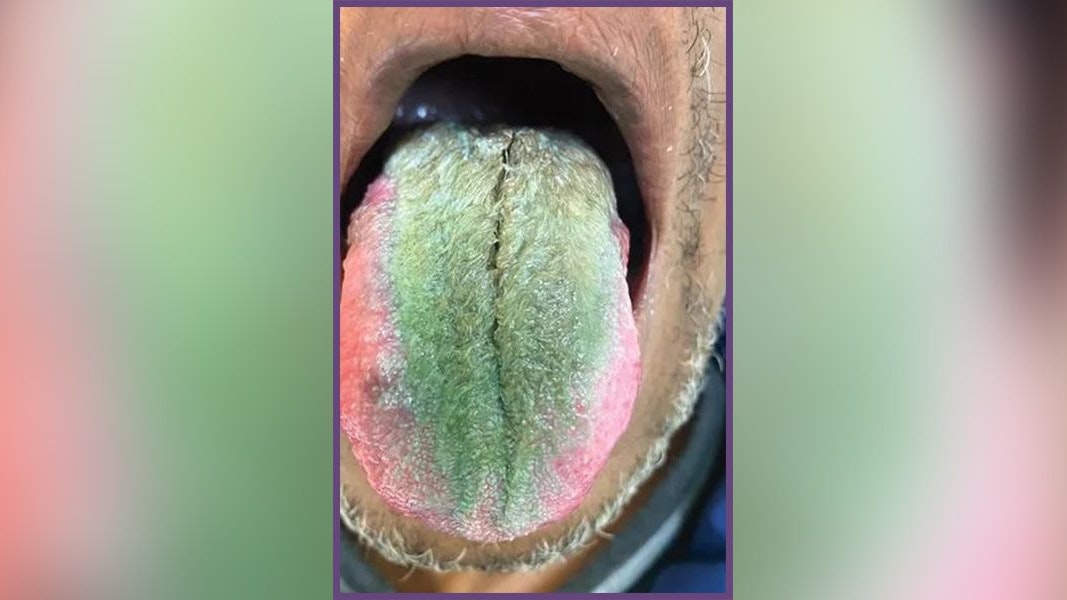 Die Ärzte diagnostizierten bei dem Patienten eine so genannte "haarige Zunge" (Bild) – einen "anormalen Belag" aus Hautzellen, der sich auf der Oberseite der Zunge bildet, wenn sich winzigen Ausstülpungen, die die Geschmacksknospen enthalten, aufgrund einer Ansammlung von Ablagerungen und Bakterien vergrößern und verfärbt haben.