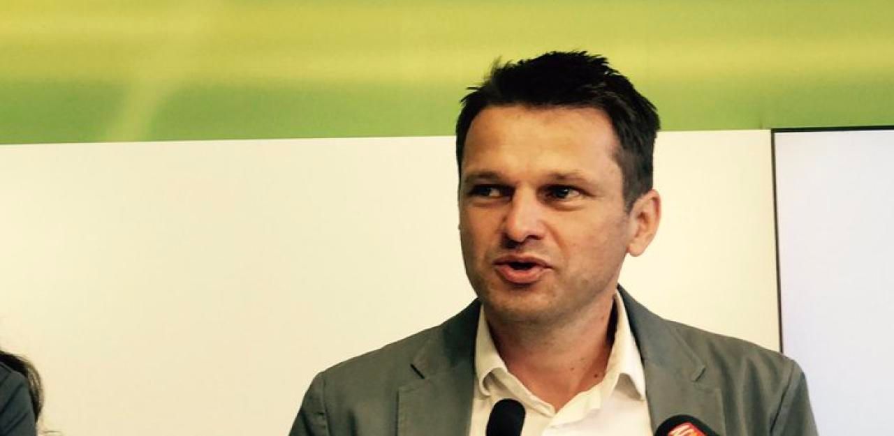 Grüner Klubchef Albert Steinhauser stellt neue Kandidatin Ulli Fischer vor.