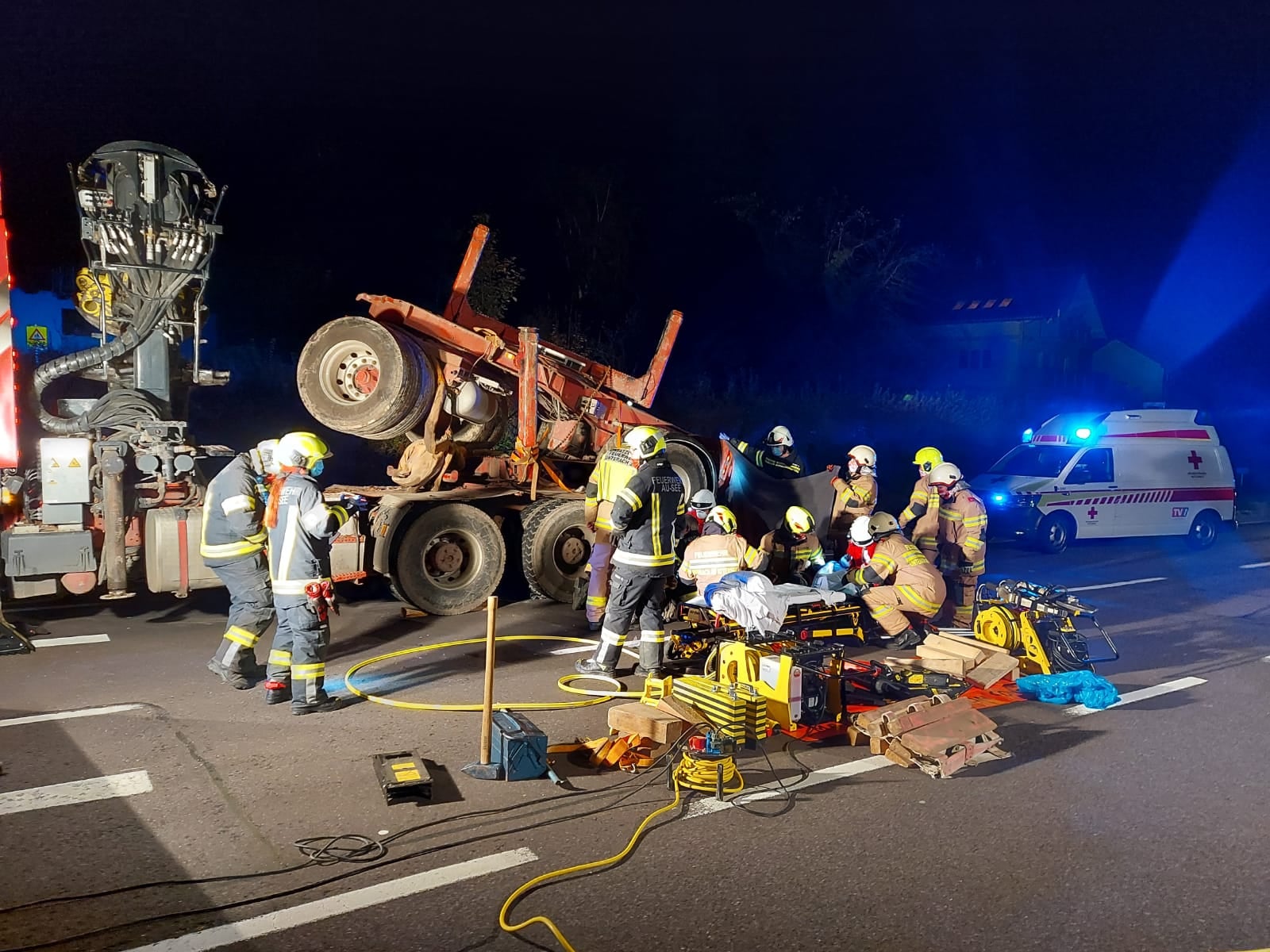 In Unterach am Atteresee musste die Feuerwehr einen Lenker unter seinem Lkw befreien.