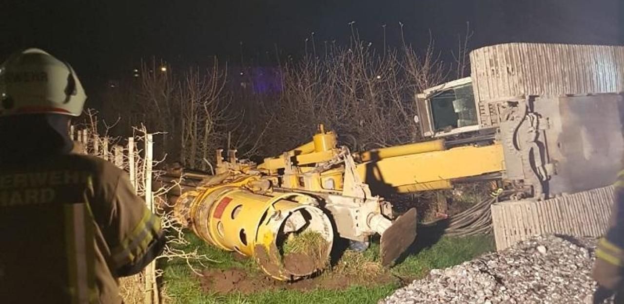 Die Feuerwehr Hard wurde zu einem brenzligen Einsatz gerufen: Ein Drehbohrgerät war in eine Hochspannungsleitung geraten.