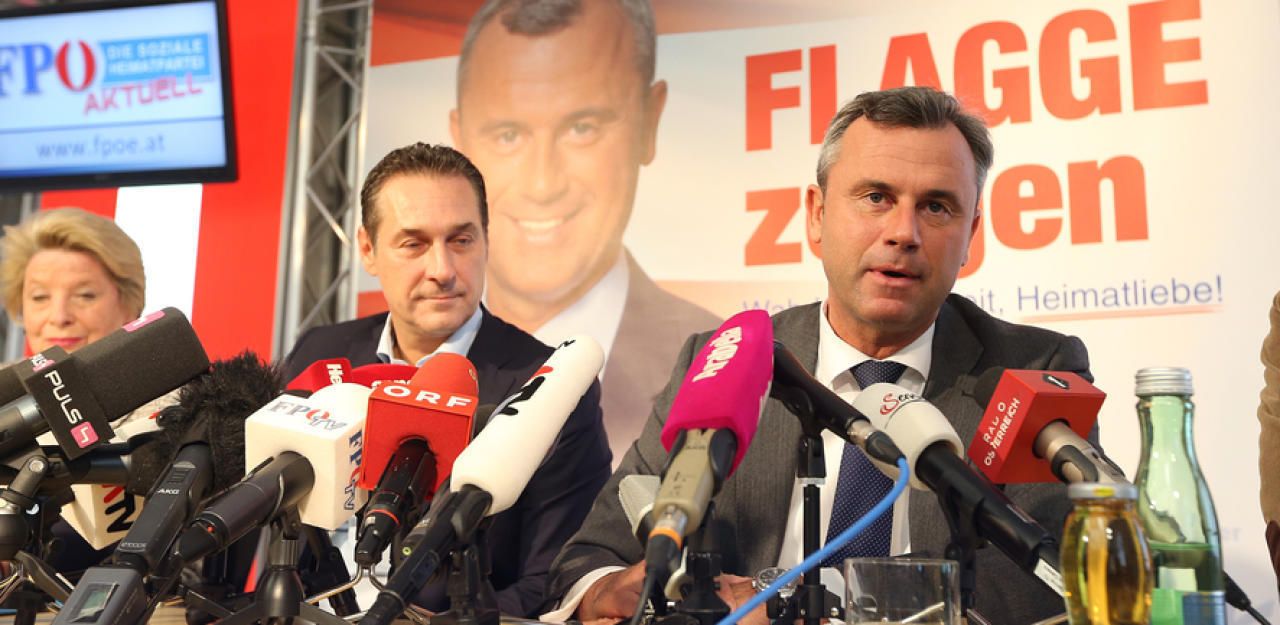 FPÖ-Chef Heinz-Christian Strache und der damalige Kandidat Norbert Hofer (r.) bei einer Pressekonferenz.