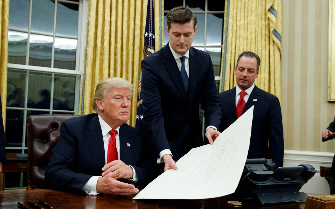 Rücktritt: "Staff Secretary" Rob Porter (Mitte, am 20. Jänner) musste jetzt US-Präsident Donald Trump seine Kündigung vorlegen.