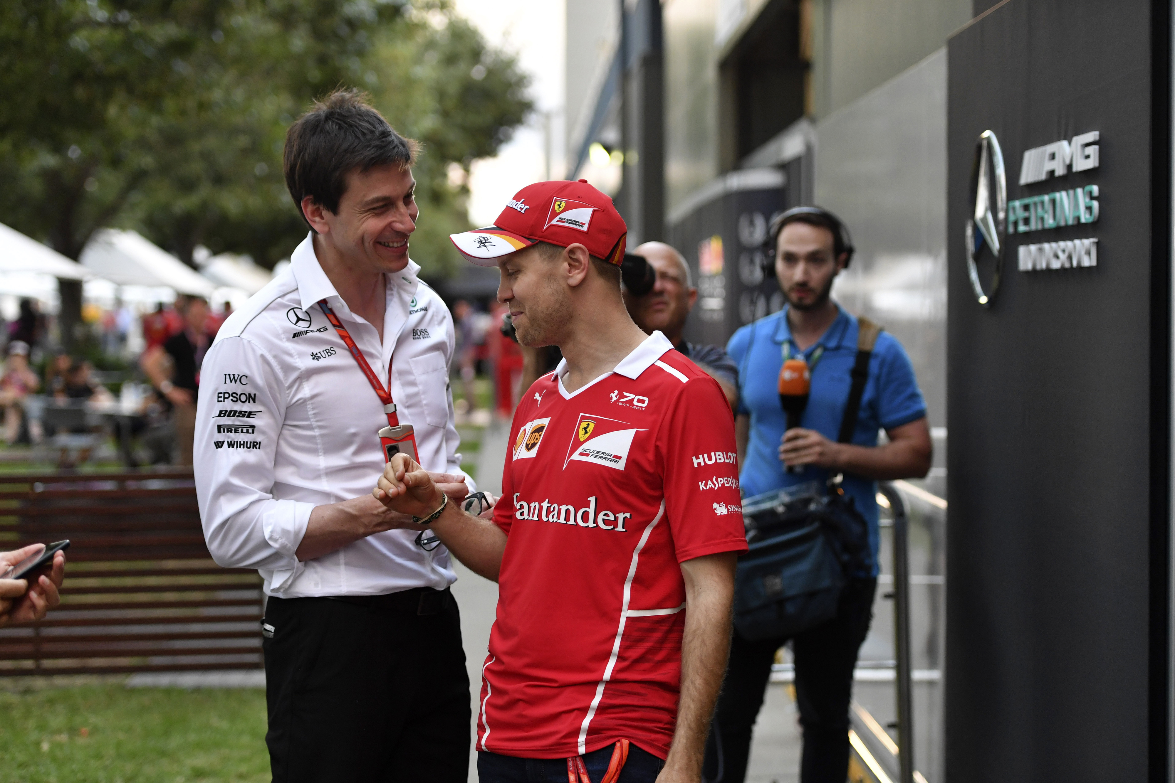 Sebastian Vettel und Mercedes-Boss Toto Wolff, der Anteile an Aston Martin besitzt.
