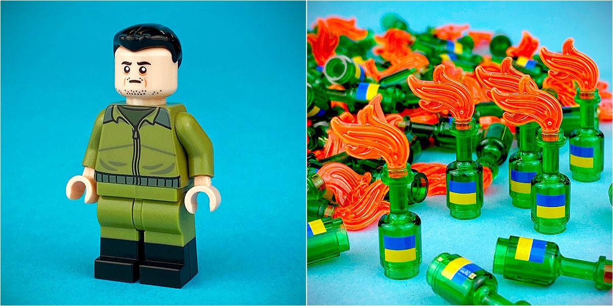 Die Figur des Präsidenten Selenskyj und Molotow-Cocktails werden aufgrund der hohen Nachfrage nun nachproduziert.