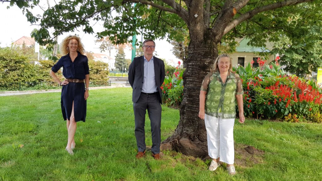 Der Verein "Keine Teilung Hietzings durch die Verbindungsbahn Neu" bereitet sich im Rahmen der bereits gestarteten Umweltverträglichkeitsprüfung auf den Kampf gegen die Verbindungsbahn Neu vor. Im Bild die Vorstandsmitglieder (v.l.n.r.) Alice Bader, Rechtsanwalt Stephan Messner und Hellia Mader-Schwab.