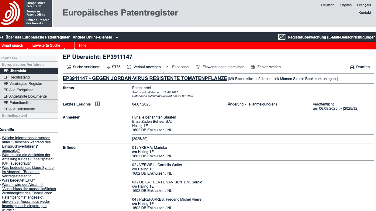 Das umstrittene Paradeiser-Patent wurde am 4. Juli 2025 erteilt.