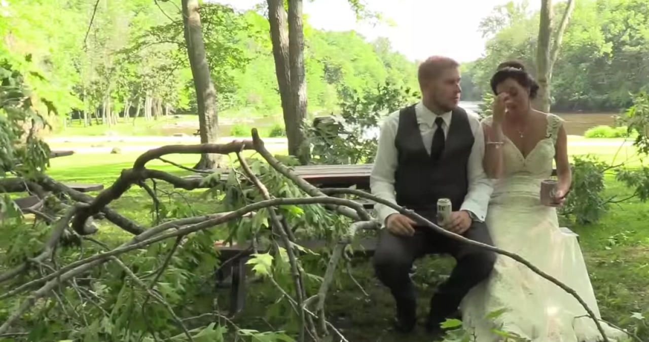 Gutes Omen? Das Brautpaar nach dem Unglück. Zum Glück gab es keine Verletzten.