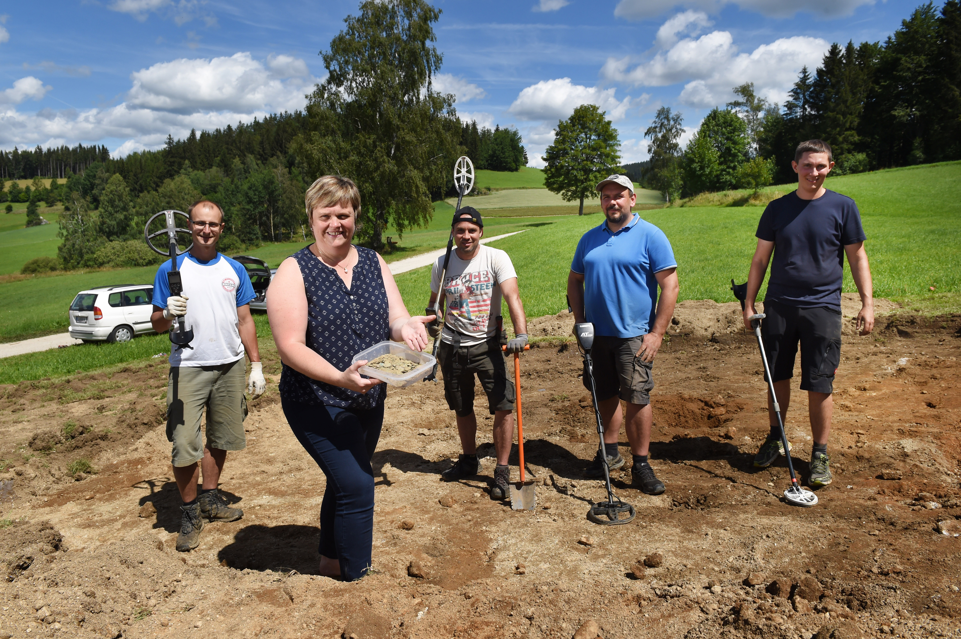 Das Finder-Quartett mit Grundstücksbesitzerin Edeltraud Hüttmannsberger.