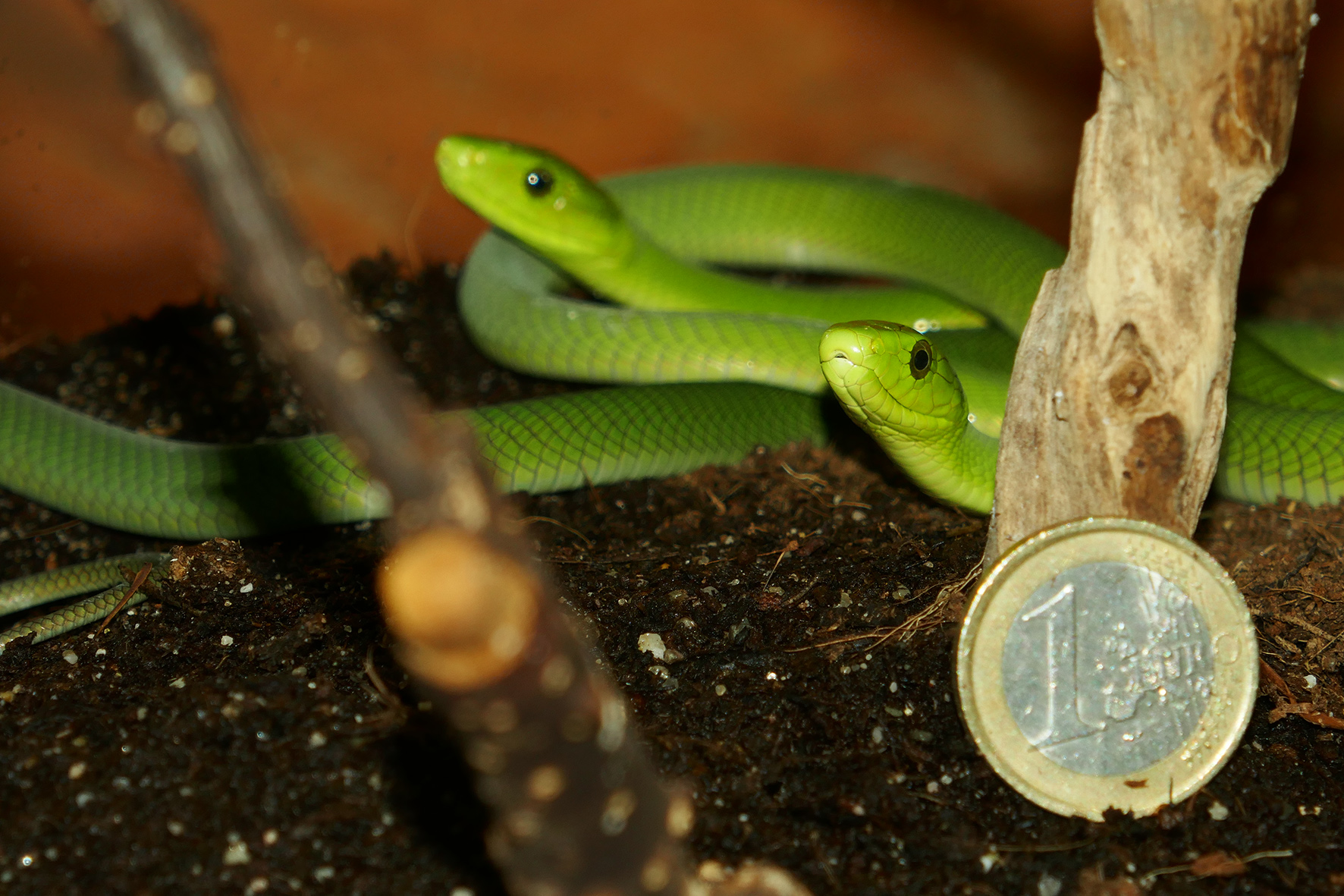 Der Mamba-Nachwuchs ist nur so dünn wie ein Bleistift und ca. 40 Zentimeter lang.
