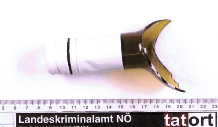 Durch die Wucht der Schläge zerbrach die Flasche.