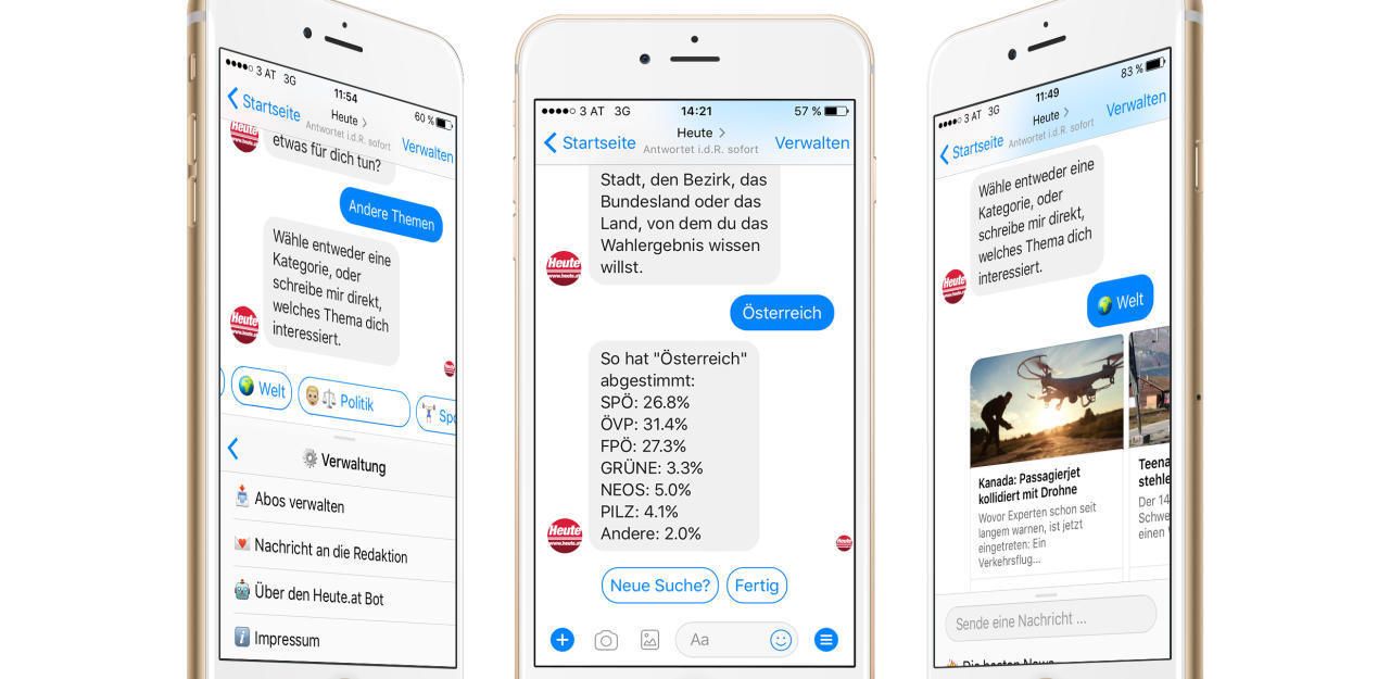 Der "Heute"-Chatbot verrät neben News, Wetter und Horoskop auch Infos wie das aktuelle Wahlergebnis.