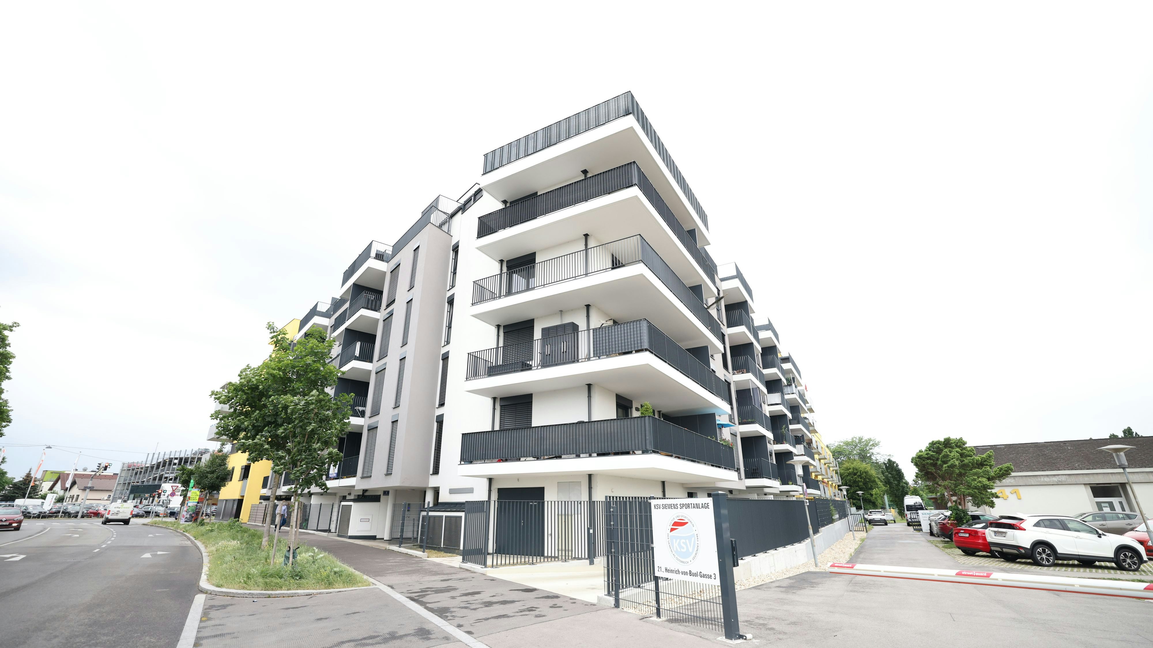 Französische Bulldogge flog von einem Balkon dieses Hauses in Wien-Floridsdorf. Der Hund ist tot, der Besitzer erhielt jetzt einen Freispruch vor Gericht.