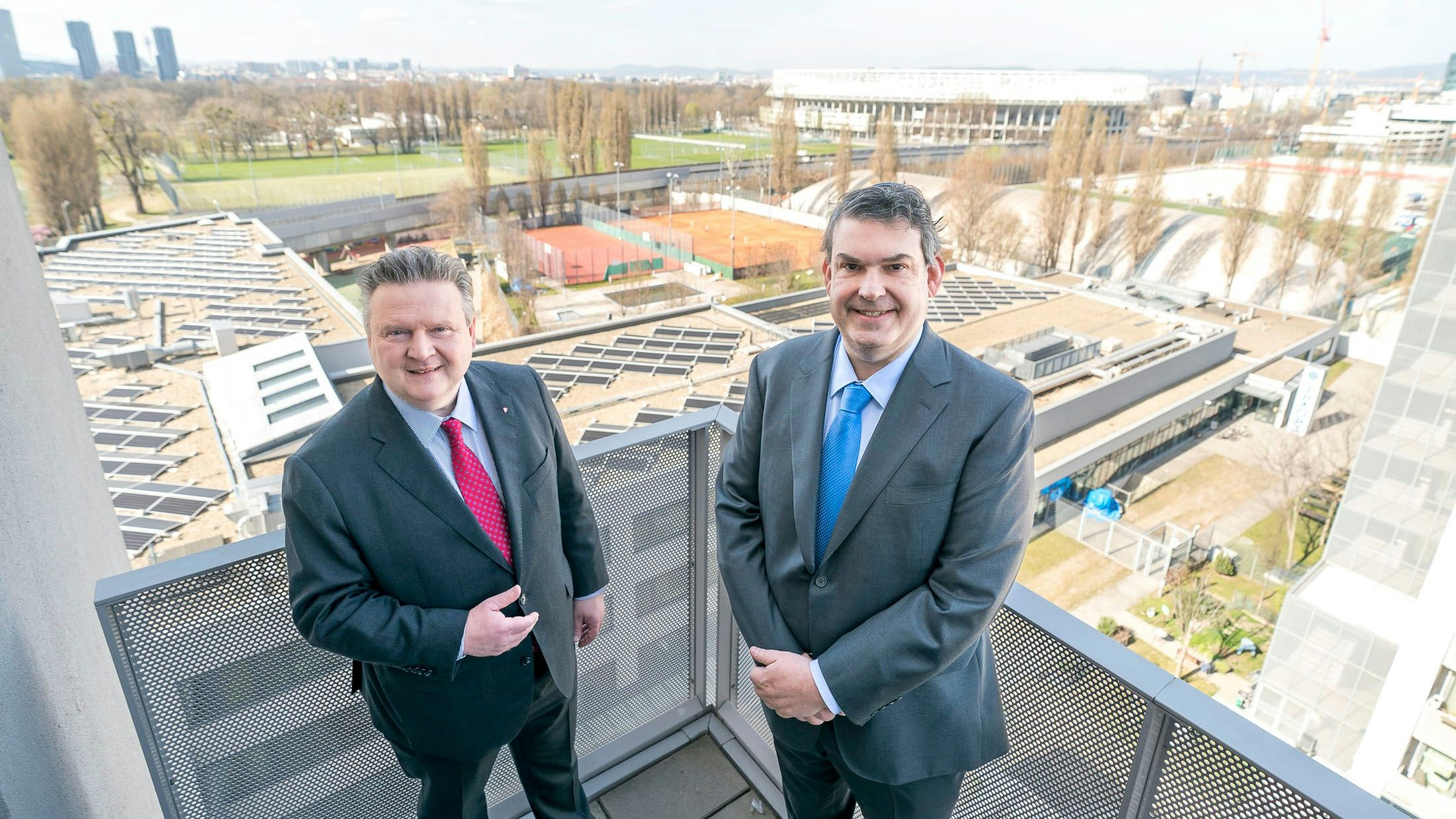 Bürgermeister Michael Ludwig (SP) und IKG-Präsident Oskar Deutsch am IKG-Campus.