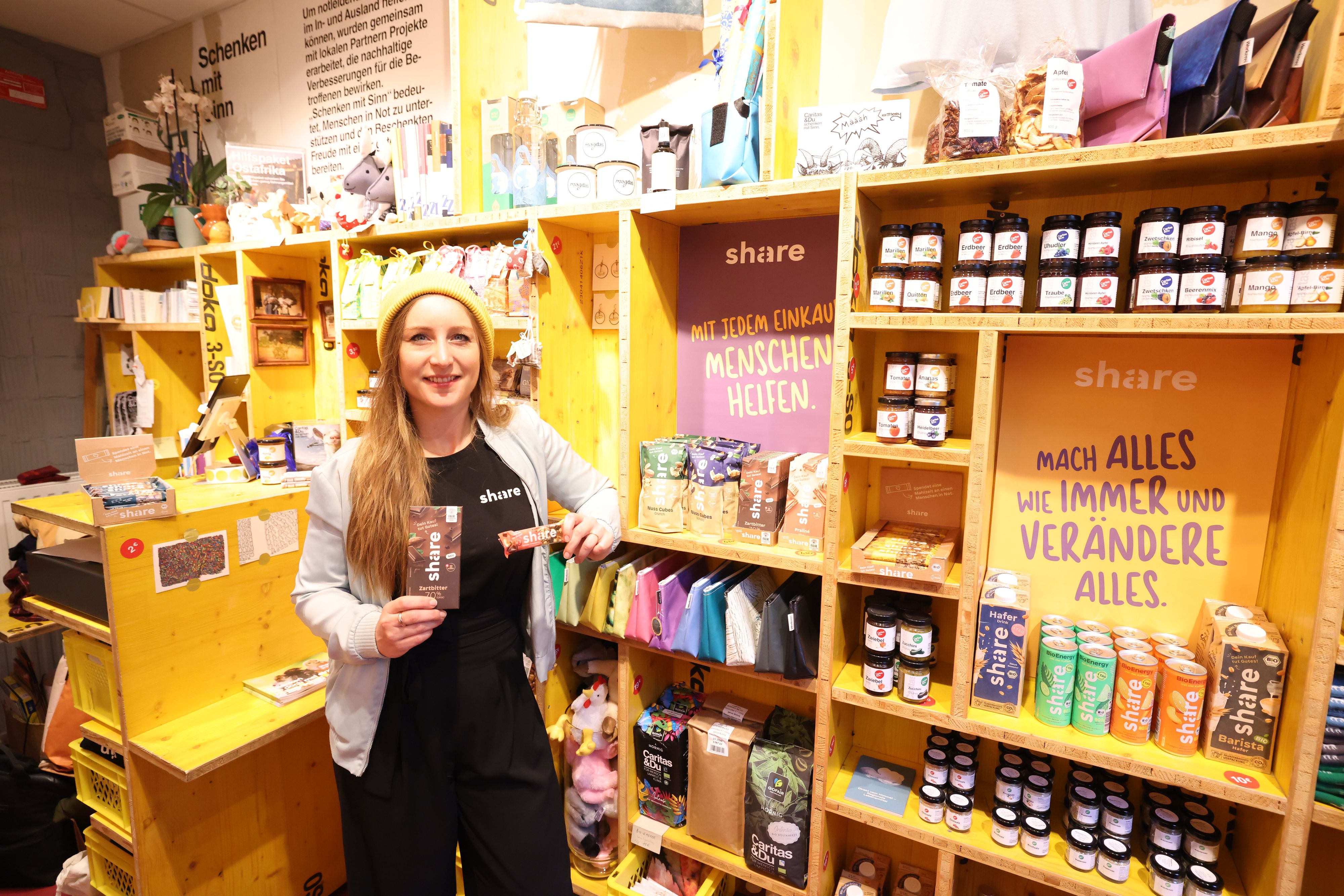 Das Unternehmen "share" (im Bild Gründerin Iris Braun) eröffnete gemeinsam mit der Caritas einen Pop-Up-Store auf der Mariahilfer Straße. Mit der Aktion will man ein Zeichen gegen Welthunger setzen.