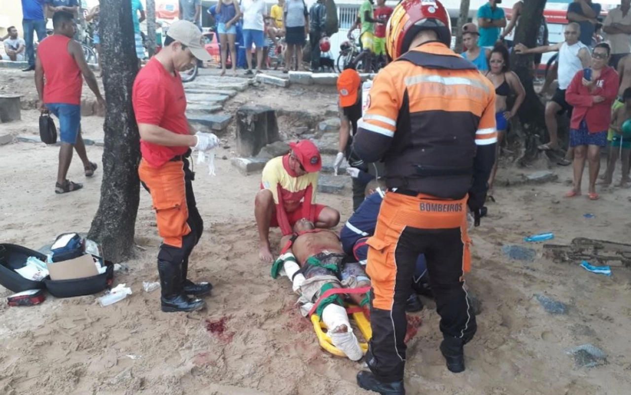 Schock am Strand: Der schwer verletzte Pablo de M. (34) wird nach der Hai-Attacke verarztet.