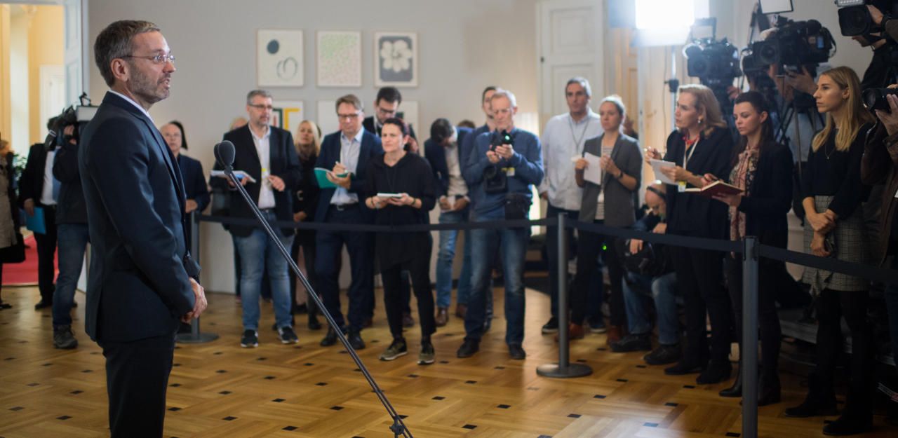 Innenminister Herbert Kickl (FP) am Mittwoch vor Medien