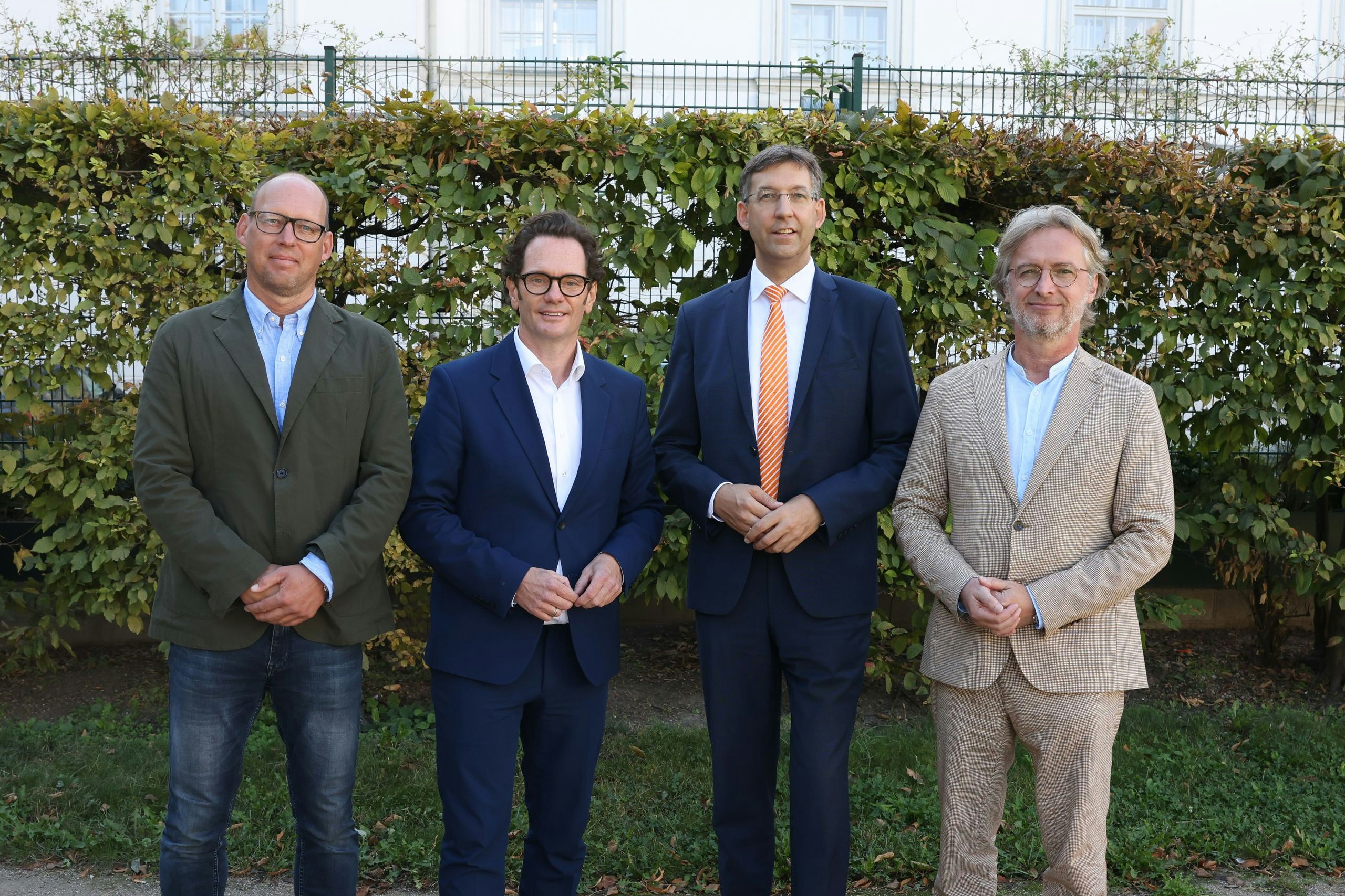 Kaufleute-Obmann in Neubau, Kurt Wilhelm, Neubaus Bezirksvorsteher Markus Reiter (Grüne), Bezirksvorsteher der Inneren Stadt Markus Figl (ÖVP) und Josefstadts Bezirksvorsteher Martin Fabisch (Grüne) fordern klare Regelungen für die geplante ganzjährige Öffnung der Schanigärten.