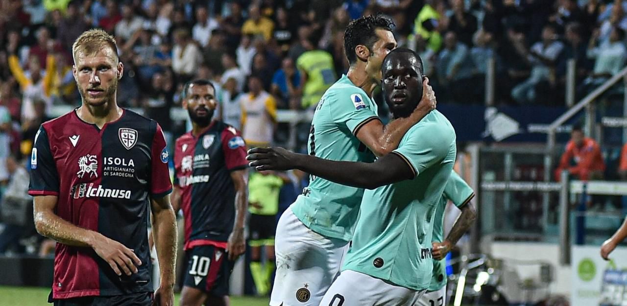 Romelu Lukaku kann sich über seinen Treffer nicht freuen. Er starrt die Cagliari-Fans an, die ihn mit Affenlauten beleidigten.