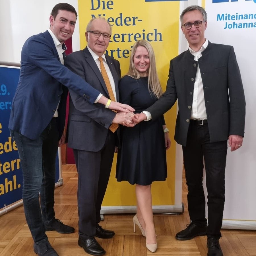 Bauernbund-Kandidatin Silke Dammerer holt sich das Landtagsmandat: Alex Bernhuber, Karl Moser und Georg Strasser freuen sich mit ihr.