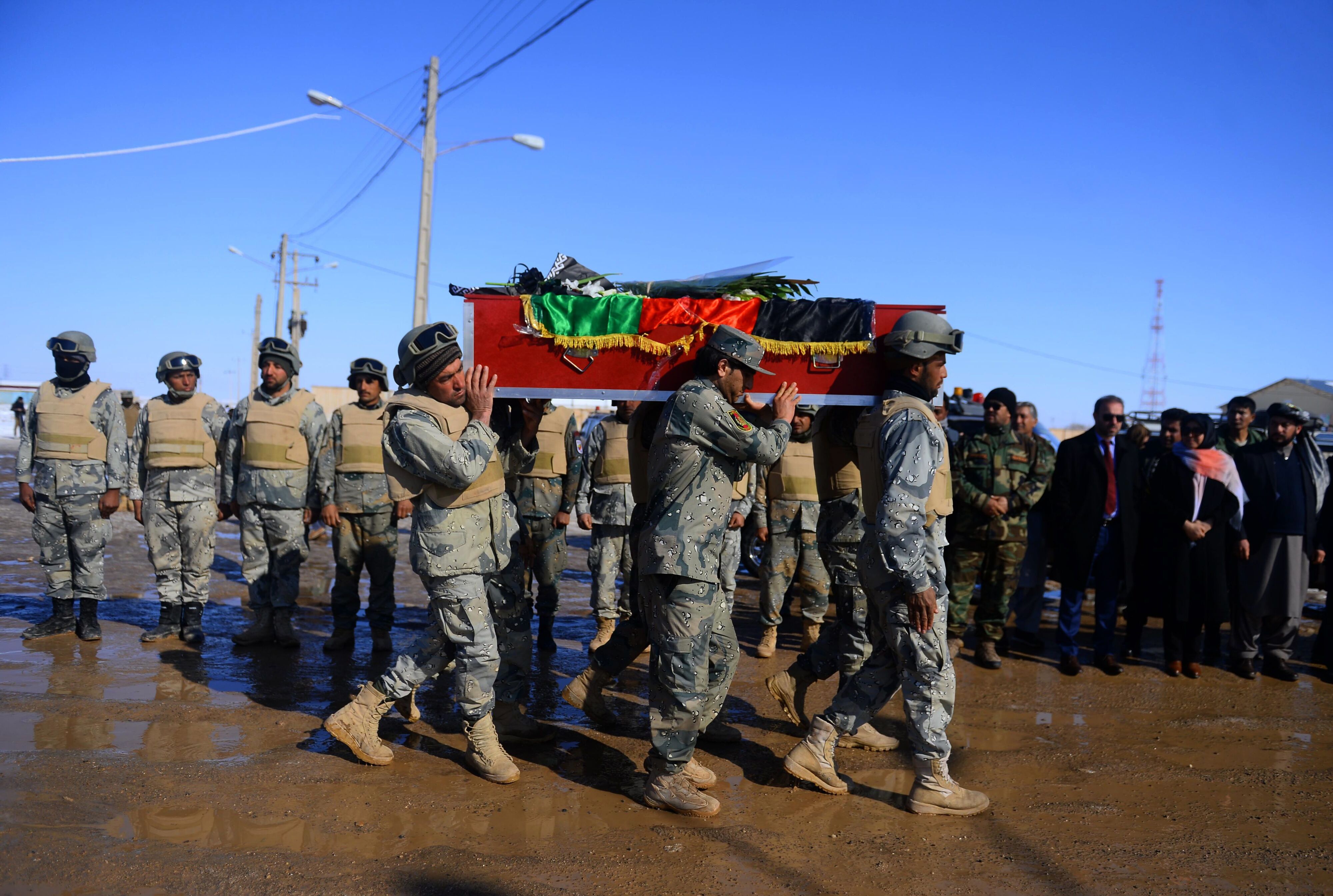 Afghanische Grenzwächter tragen ein Todesopfer der abgeschossenen Passagierfliegers PS752 (17. Jänner 2020)