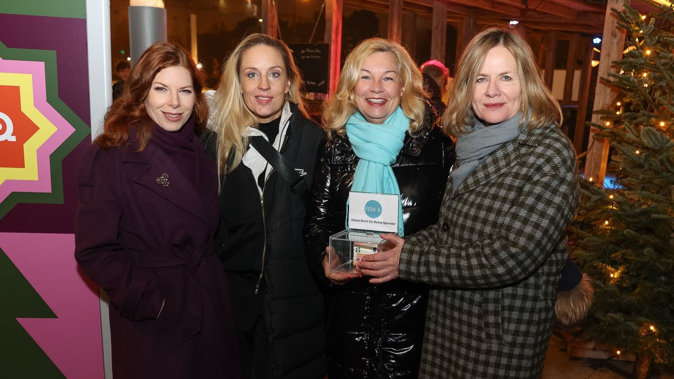 Teresa Vogl, Lilian Klebow, FEM.A-Obfrau Andrea Czak und MQ Direktorin Bettina Leidl beim Charity Punsch