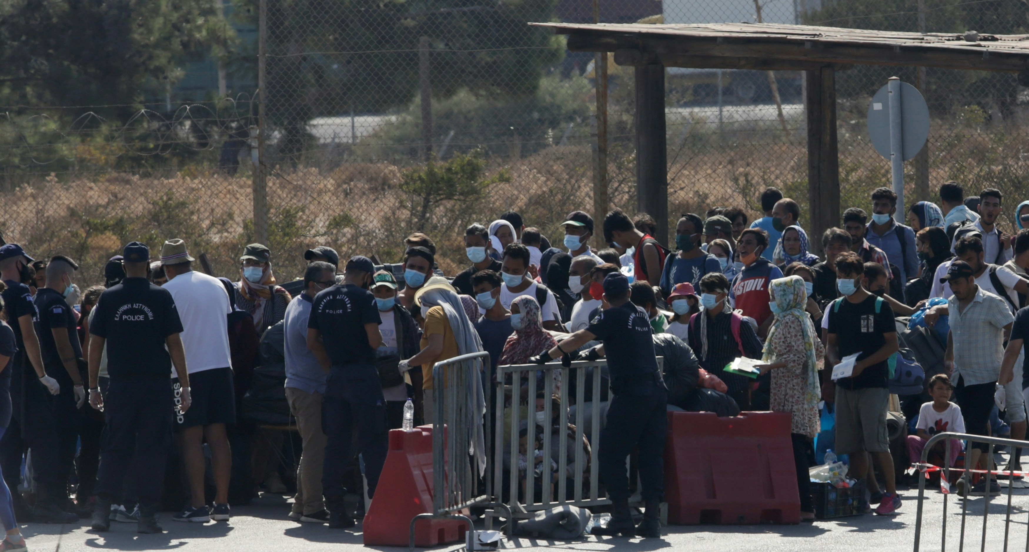 Die Polizei siedelt die Flüchtlinge um.