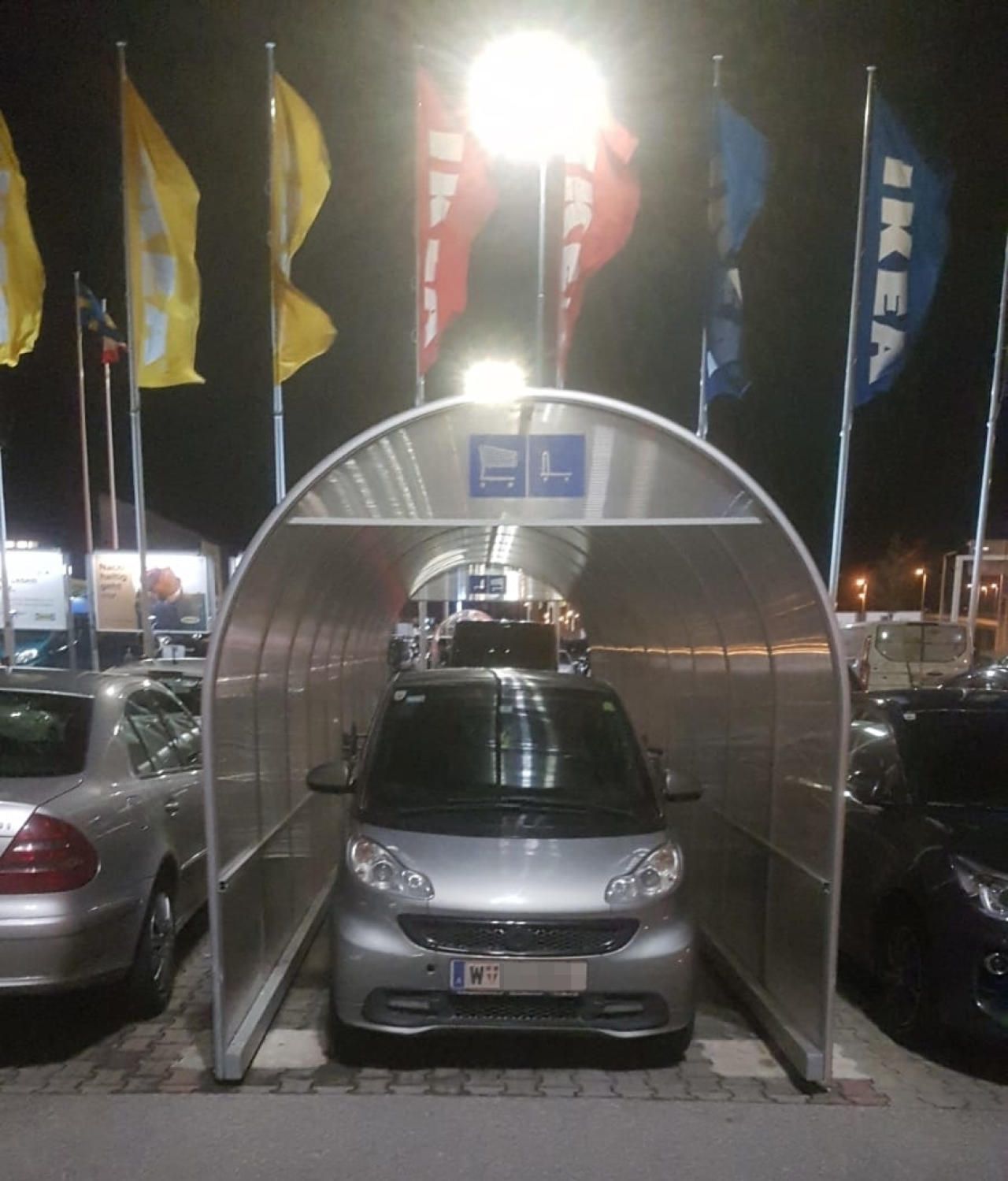 Sitzt, passt, wackelt und hat Luft kreatives Parken bei Ikea in Wien!