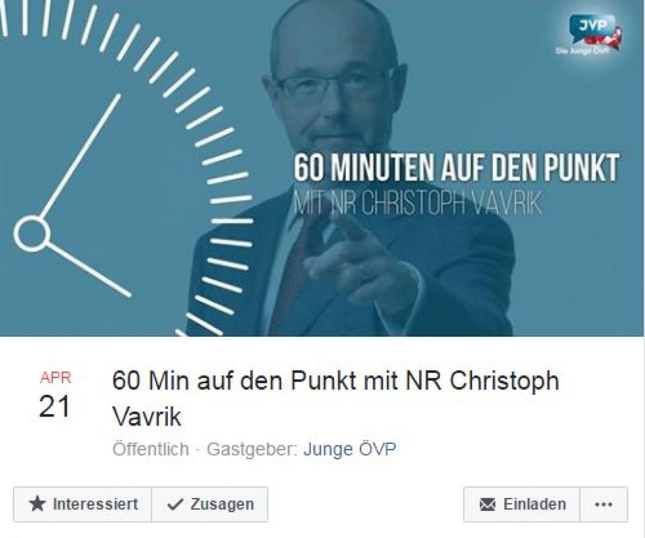Die JVP bewarb eine Veranstaltung mit Ex-Neos-Mandatar Vavrik mit einem Bild, dessen Rechte bei den Neos liegen.