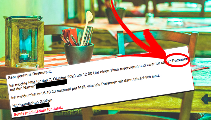 Justizressort bestellte Tisch für 17 Personen