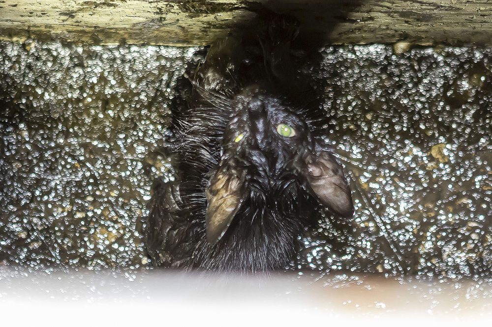 Die kleine Katze wurde von der Feuerwehr gerettet.