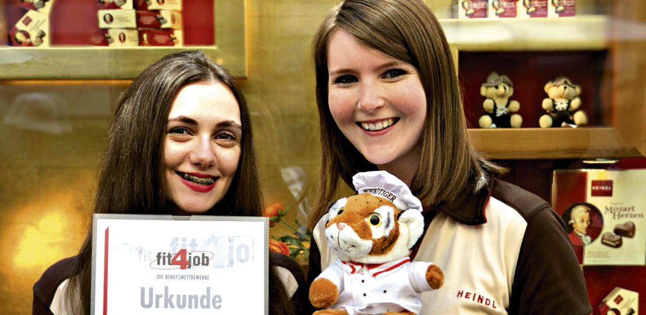 Vanessa Schachlhuber (l.) mit Nathalie Medzech gewann den 66. Berufswettbewerb der kaufmännischen Jugend.