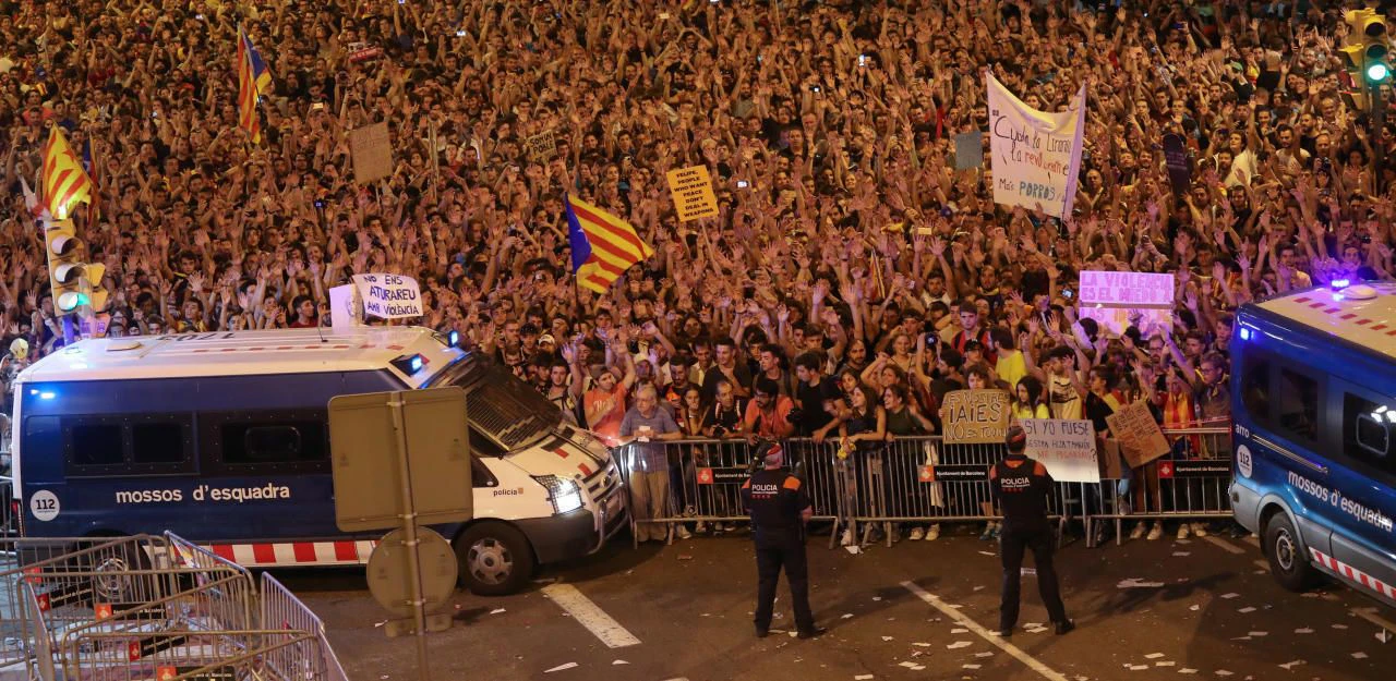 Zehntausende Menschen demonstrieren derzeit in Barcelona gegen die Regierung in Madrid.