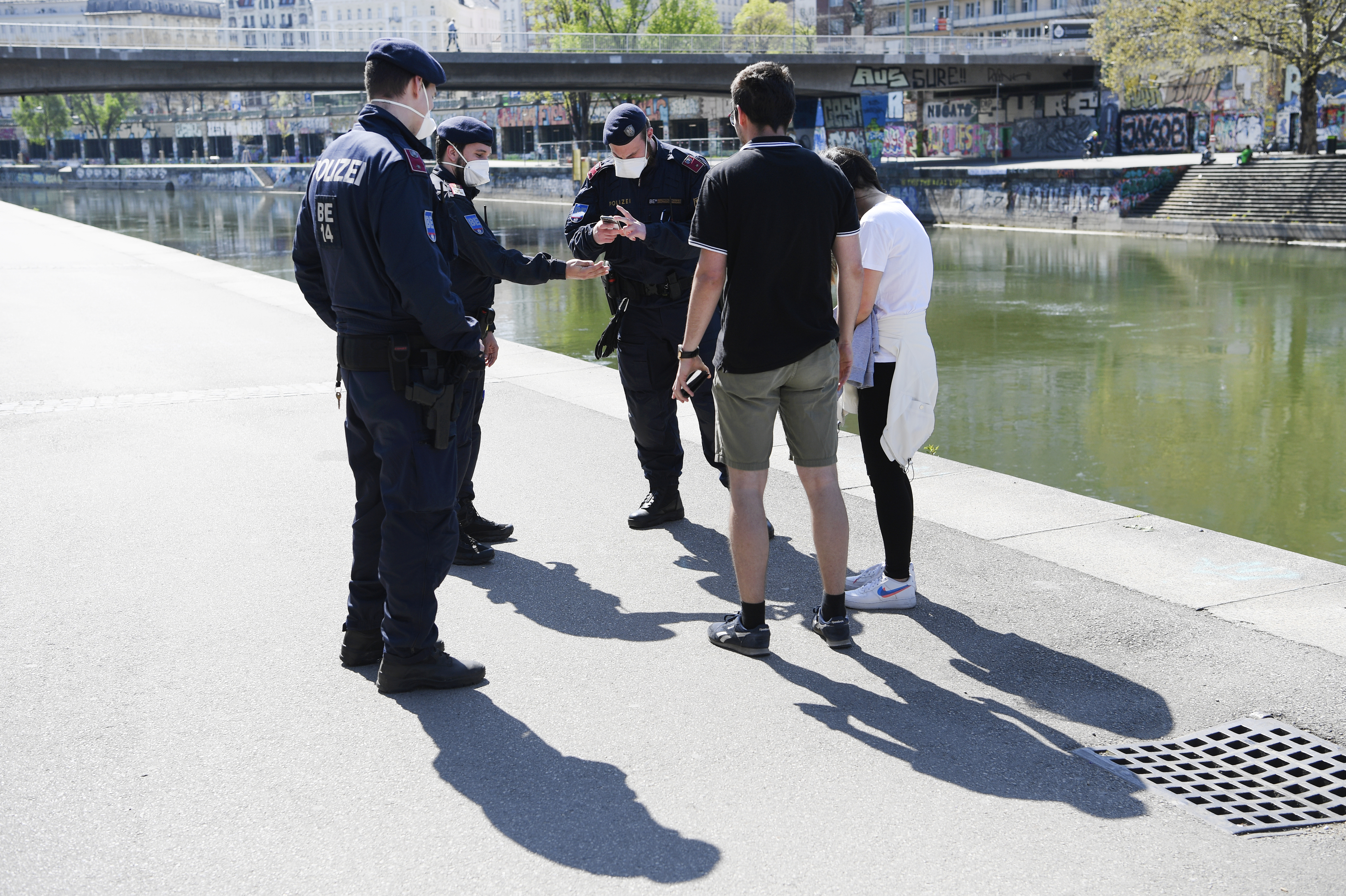 Polizeikontrolle am Donaukanal in der Corona-Krise
