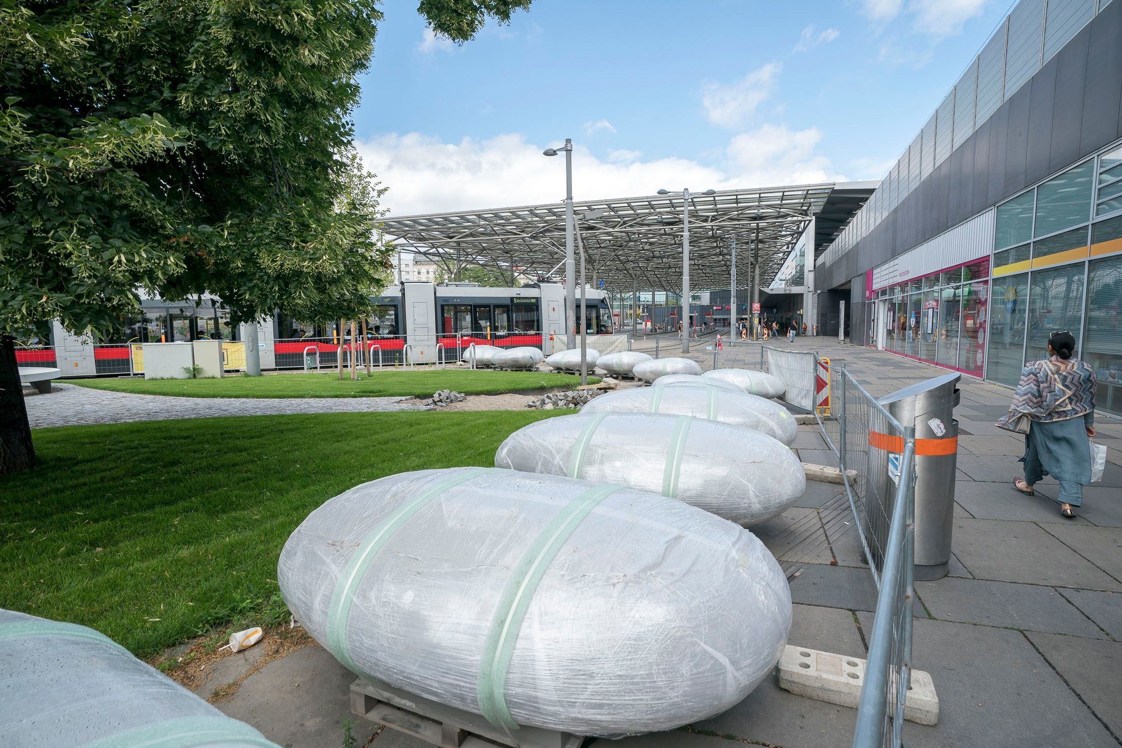Diese "Bänke" sollen zum Verweilen einladen und Spielmöglichkeiten für Kinder bieten. In den sozialen Medien sorgen sie für heftige Kritik.