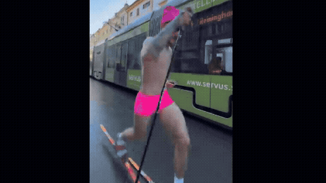 Langlauf in Graz – ohne Schnee, aber mit pinker Unterhose: Lukas Schönberger sorgt mit seiner Aktion für Aufsehen und viele Lacher.