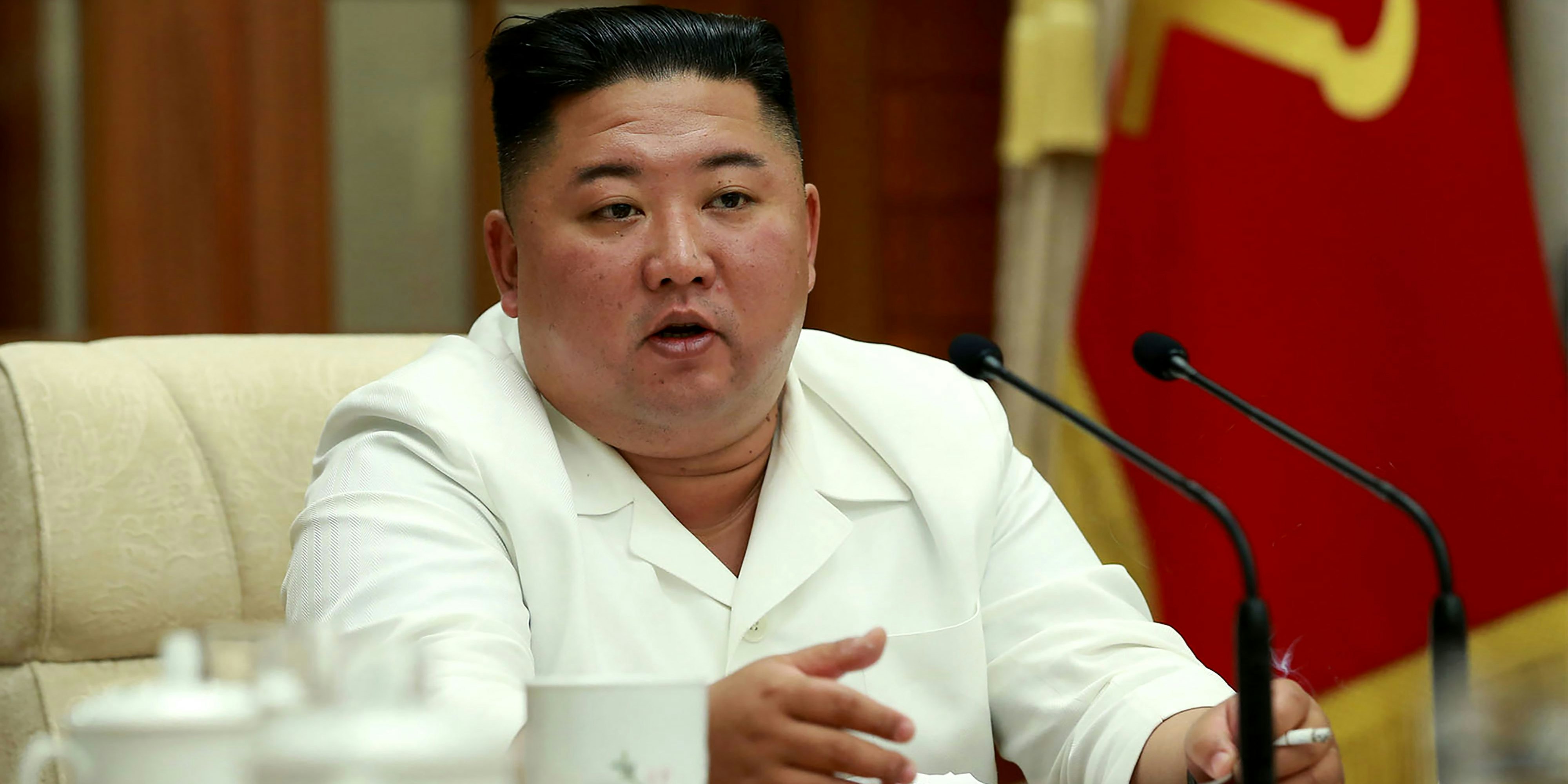 Das Bild wurde am 25. August 2020 aufgenommen und zeigt Kim Jong-un, während er bei einer Krisensitzung in Pjöngjang spricht.